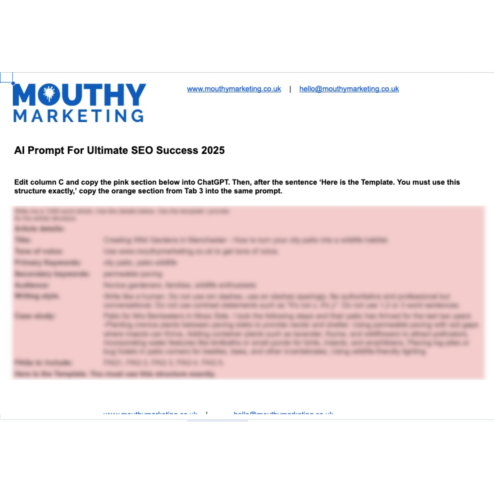 - AI-Ready Prompt: Use this exact prompt along with the page template to high-quality, targeted content for your local business using your favourite AI tools. No more generic, unhelpful AI output — just powerful, SEO-optimised copy.